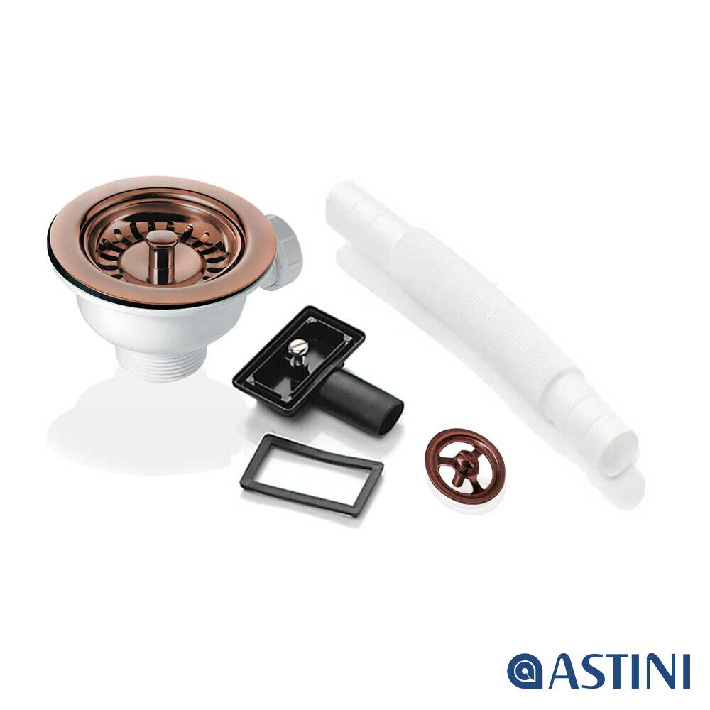 90mm Antique Copper Waste & Overflow For Astini RAK Rangemaster Ceramic Sink