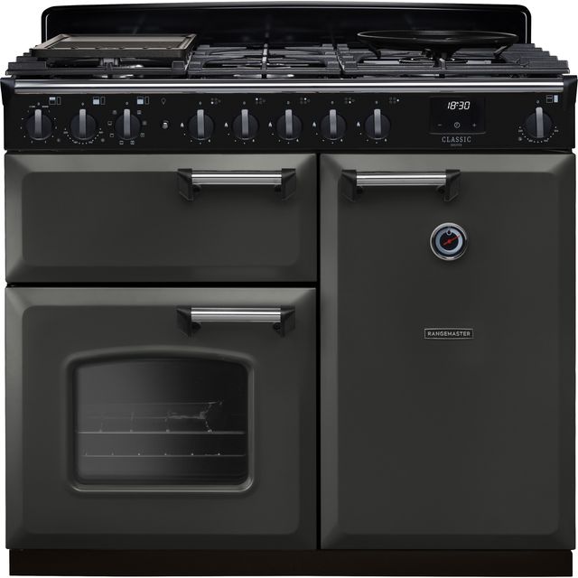 Rangemaster Classic Deluxe 100 Dual Fuel CLDL100DFPSLT/CM1 100cm Dual Fuel Range Cooker with Gas Hob - Slate / Chrome - A/A Rated