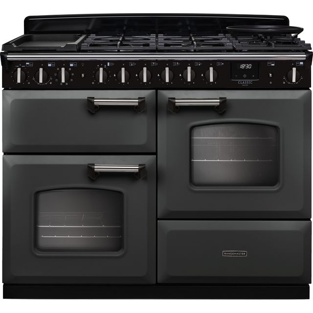 Rangemaster Classic Deluxe 110 CLDLO110DFPSLT/CM1 110cm Dual Fuel Range Cooker with Gas Hob - Slate / Chrome - A Rated