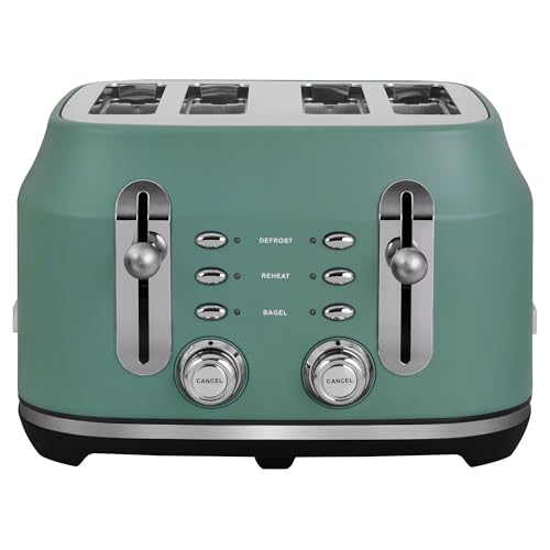 Rangemaster RMCL4S201MG Mineral Green 2.1kW 4 Slice Toaster with Defrost, Cancel & Reheat Functions, Removable Crumb Tray & 6 Power Levels with 2 Year Guarantee