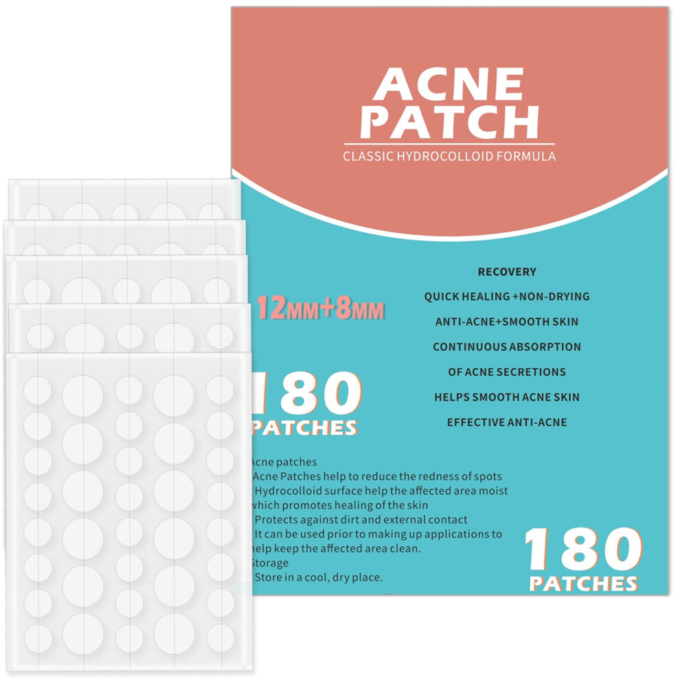 Rnitle Acne Patches[180 Pcs],Hydrocolloid Dressing Cover for Effective Calming and Relief of Acne,Pimple Patches,Spot Treatment Pimple Stickers,Facial