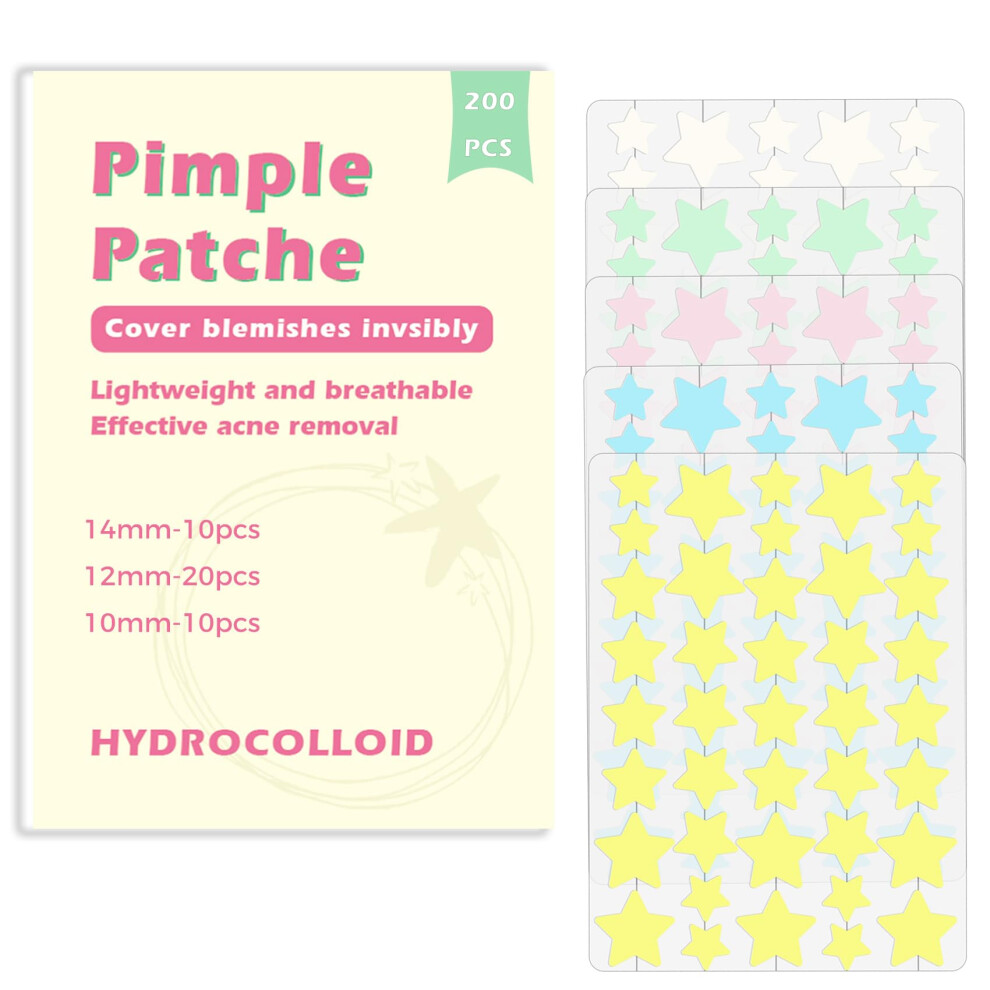 Rnitle Acne Patches[200 Pcs Cute Star],Hydrocolloid Dressing Cover for Effective Calming and Relief of Acne,Pimple Patches,Spot Treatment Pimple