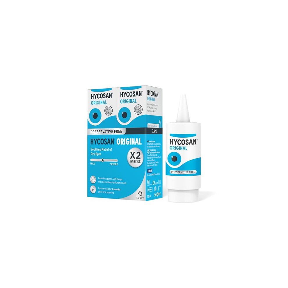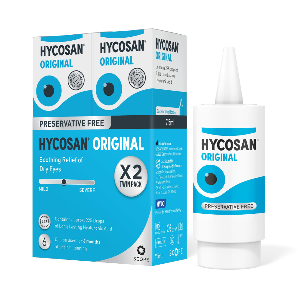 Hycosan Original - Twin Pack - Eye Drops with Hyaluronic Acid for Treatment and Rapid Relief of Mild to Moderate Dry Eyes - Preser