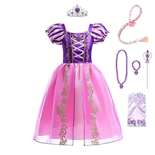 ACWOO Rapunzel Princess Dress for Kids Girls, Princess Rapunzel Party Dress Costume with Wand and Crown, Party Fancy Dress Up for Halloween, Christmas, Birthday Party, Cosplay, World Book Day