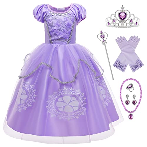 CinheyU Girls Sofia Princess Birthday Dress Rapunzel Carnival Halloween Costume Pageant Christmas Evening Party Gown w/Accessories Purple 003 5-6T