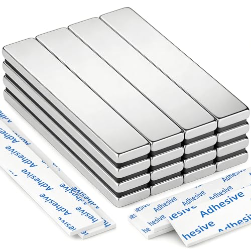 16 Pack Strong Magnet, Neodymium Magnetic Bar, 60 x 10 x 3 mm Rare Earth Magnet, Bar Magnets, Extremely Powerful Magnets with 16 Pcs Double-sided Adhesive for Multi-Use