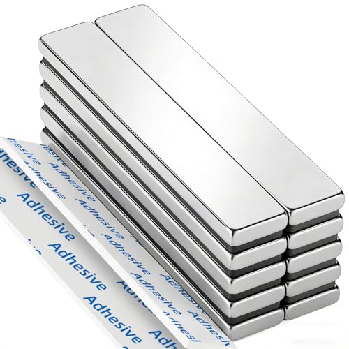 Grtard 10 Pack Neodymium Magnets Bar, 60 x 10 x 3 mm Strong Rare Earth Magnetic Bar Magnets, Extremely Powerful Magnet with 10 pcs Double-sided Adhesive for Multi-Use, DIY, Craft