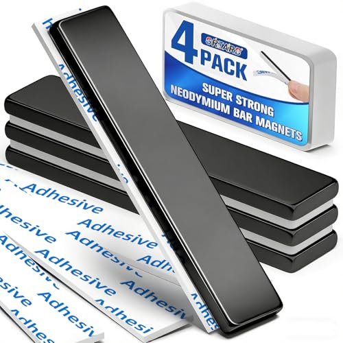 Grtard 4 Pack Neodymium Magnets, Strong Magnet, 60 x 10 x 3 mm Rare Earth Magnets, Extremely Powerful Bar, Fridge Magnetic Strips with Double-sided Adhesive for Multi-Use (4 Pack Black)