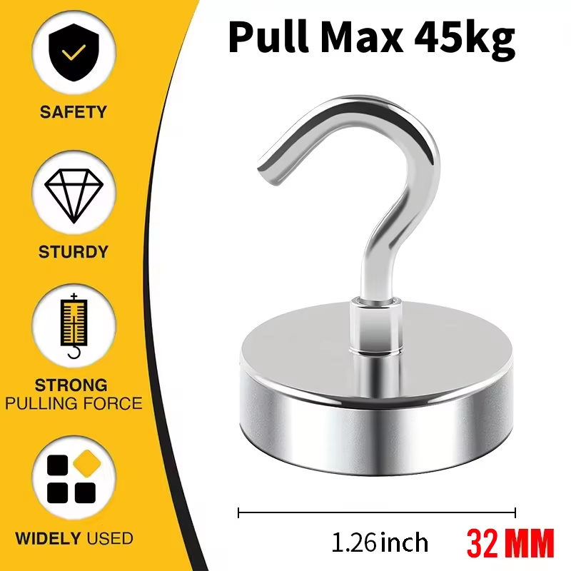 MIN CI Neodymium Fishing Magnets 45kg(99lbs), 32mm Strong Rare Earth Magnets with Eye Bolts - 12Pack