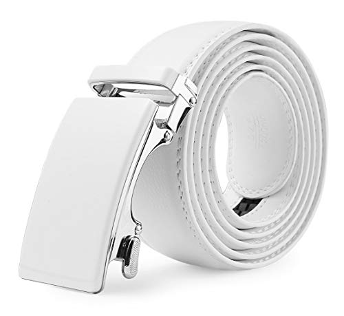 Nelbons Men's Belt, Slide Ratchet Belt for Men with Leather 1 3/8“ width 35mm,Trim to Fit (Z-White B8, 130cm / 28 "-44" adjustable waist)