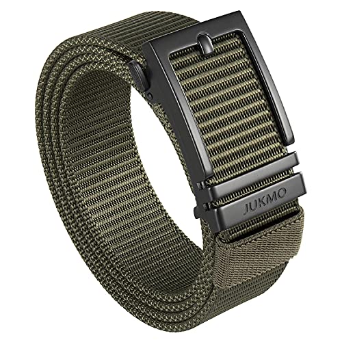 JUKMO Ratchet Belt for Men, Nylon Web Tactical Gun Belt with Automatic Slide Buckle (Green, Small for Waist 34"-38" (Length 45"))