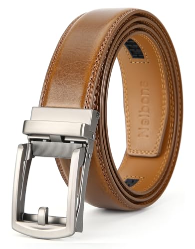 Nelbons Men's Belt, Leather Ratchet Belt for Men with Slide Buckle,Trim to Fit width 3.5cm 1 3/8 inch…