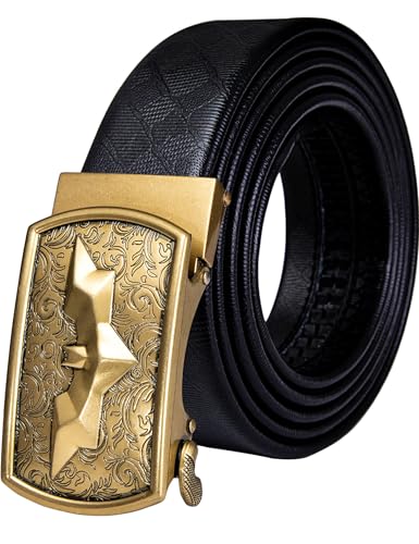 Barry.Wang Men's Bat Buckle Belt,Genuine Leather Belt Ratchet Sliding Buckle Fashion Gift Packaging Christmas