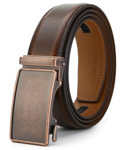 Men's Belt,Nelbons Slide Ratchet Belt for Men with Genuine Leather 1 3/8,Trim to Fit (Brown, Up to 44-inch waist adjustable)