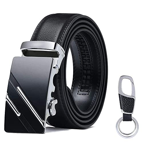flintronic Men’s Leather Belt, Automatic Buckle Leather Ratchet Belt 3.5cm * 125cm (Keychain & Gift Box Include)