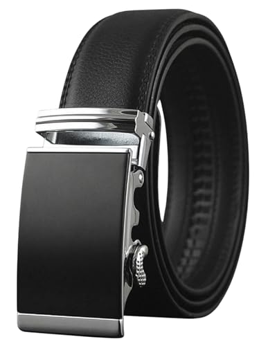 Addfect Belt Automatic Buckle for Men Genuine Leather Belt Business and Suit Belt Ratchet Automatic Belt Durable Work Belt Black Belt Width 3.5 cm, silver, Large