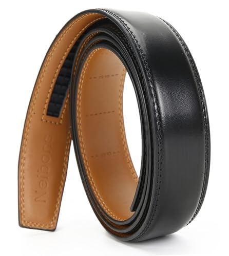 Nelbons Men's Leather Ratchet Belt Strap Only 30mm,Leather Belt without Buckle,replacement belt… (A-black, UP TO Waist:44'')