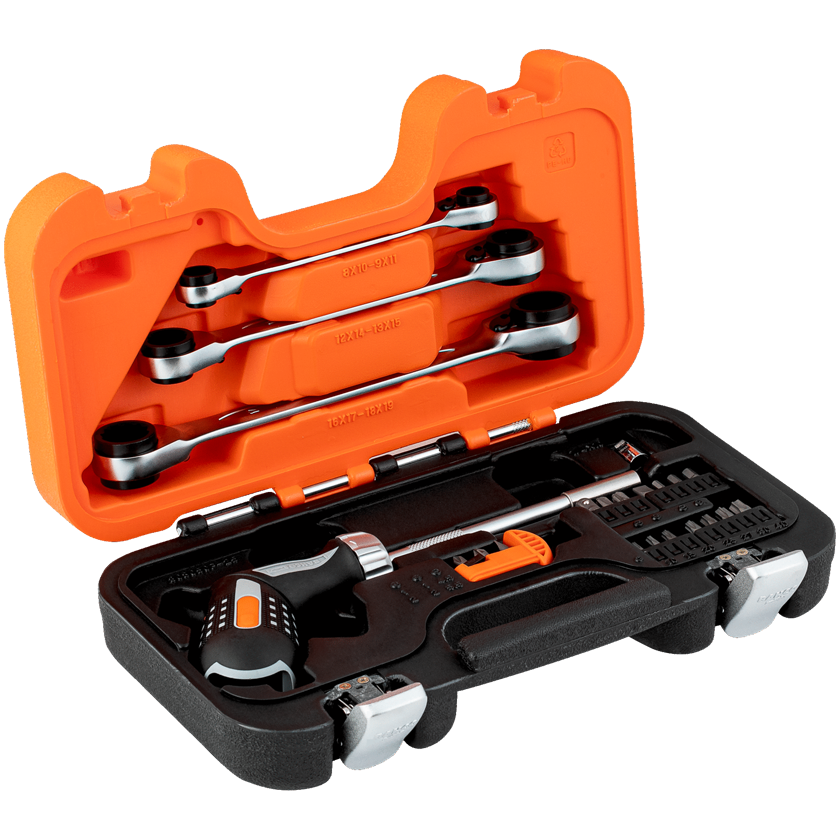 Bahco 808050P-25 1/4" Pistol Grip Ratcheting Bit Holder Screwdriver Spanner Set