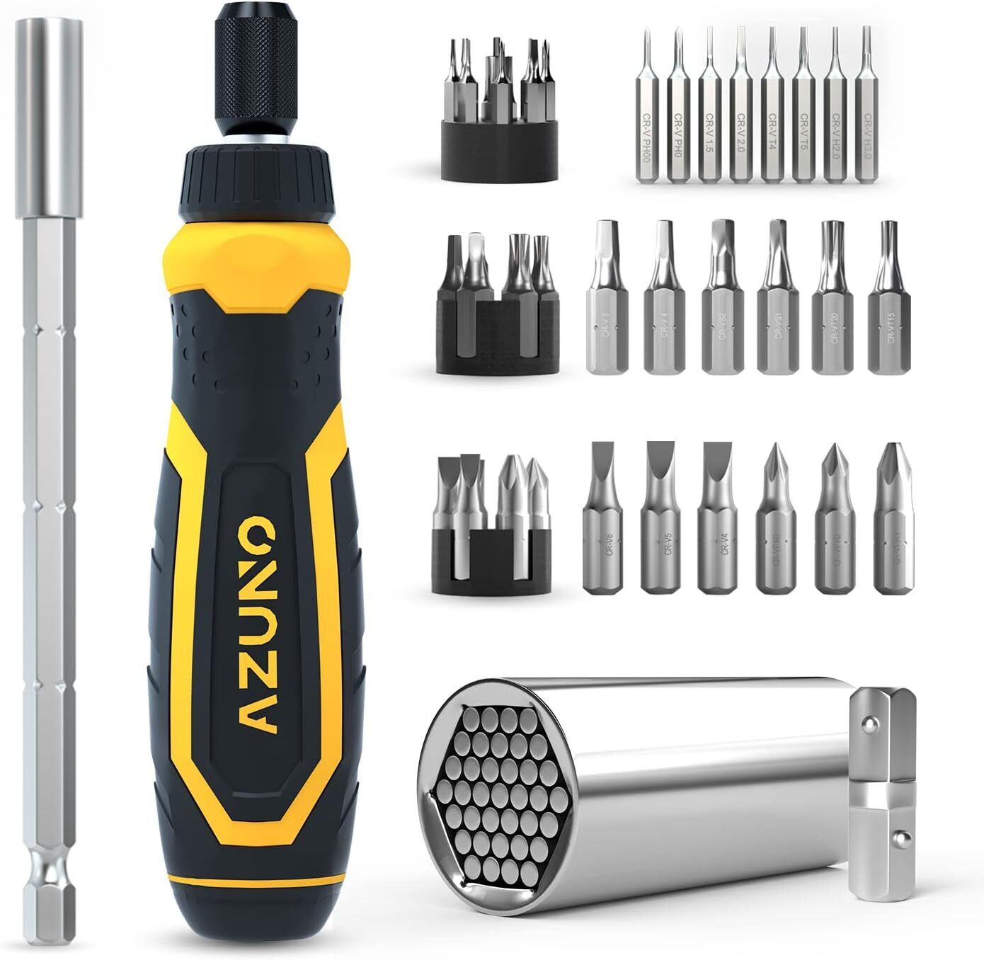 AZUNO 24 in 1 Ratcheting Multi Screwdriver Set with Universal Socket, 20 CRV Bi