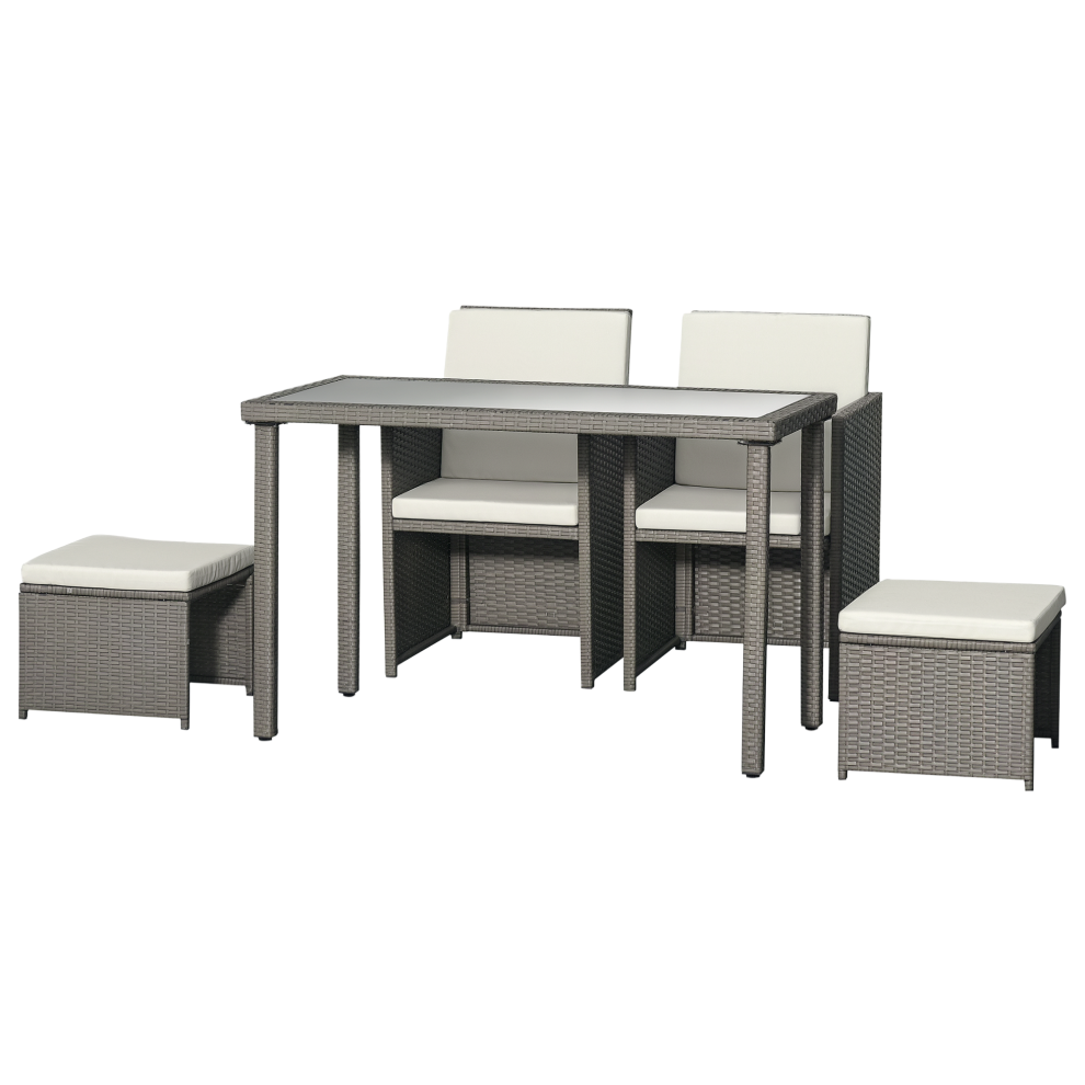 Home Detail 11pc Cube Rattan Garden Set with Table, Chairs, Footstools - Grey