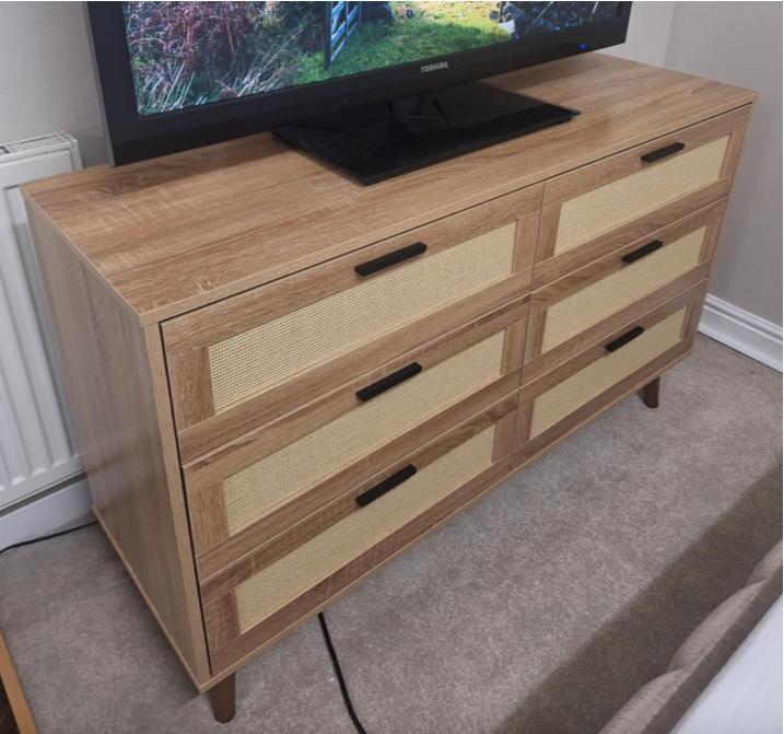 Rattan Chest of Drawers 6 Oak Storage Sideboard Wood Large Cabinet Bedroom Unit