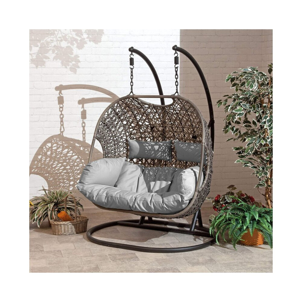 Rattan Double Hanging Egg Chair with Stand, Cushion, Dark Grey