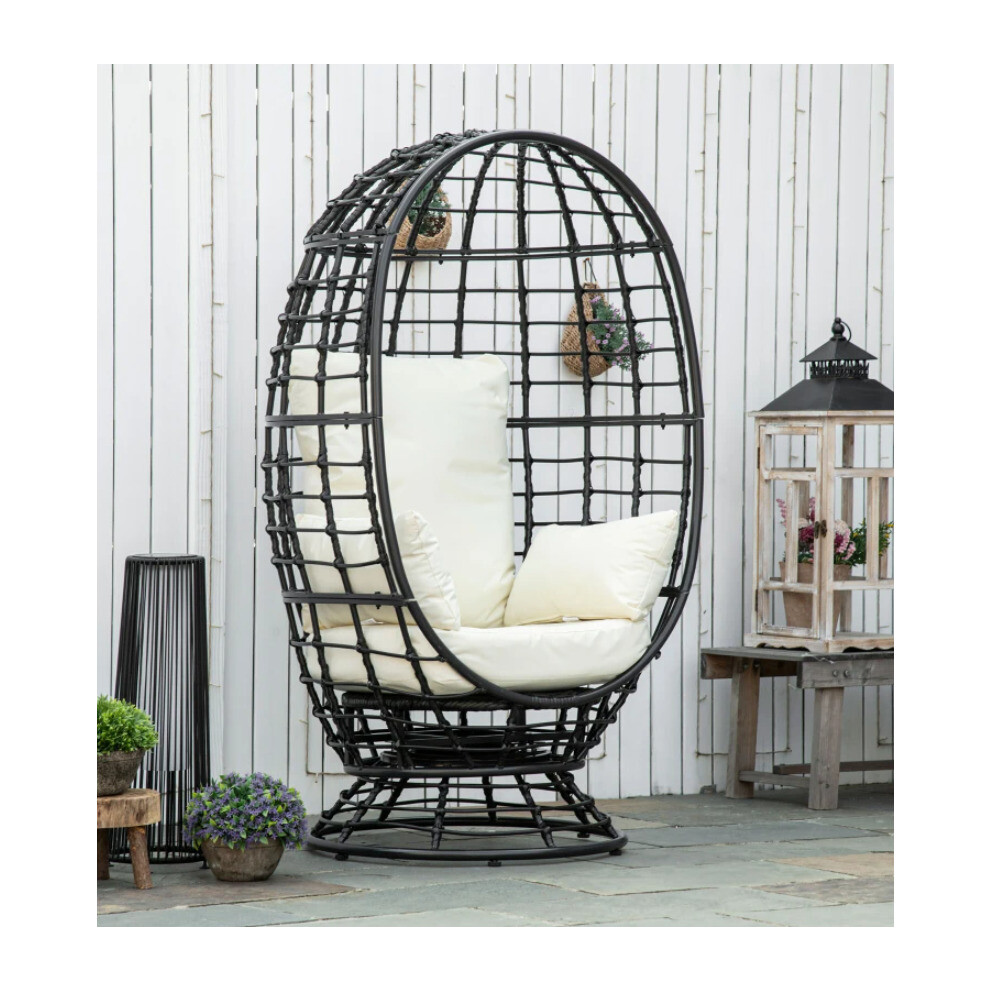 Outsunny Rattan Egg Chair, Oversized Freestanding Garden Egg Chair with Thick Tufted Cushion, Headrest, Steel Frame for Indoor and Outdoor Use, Charcoal Grey