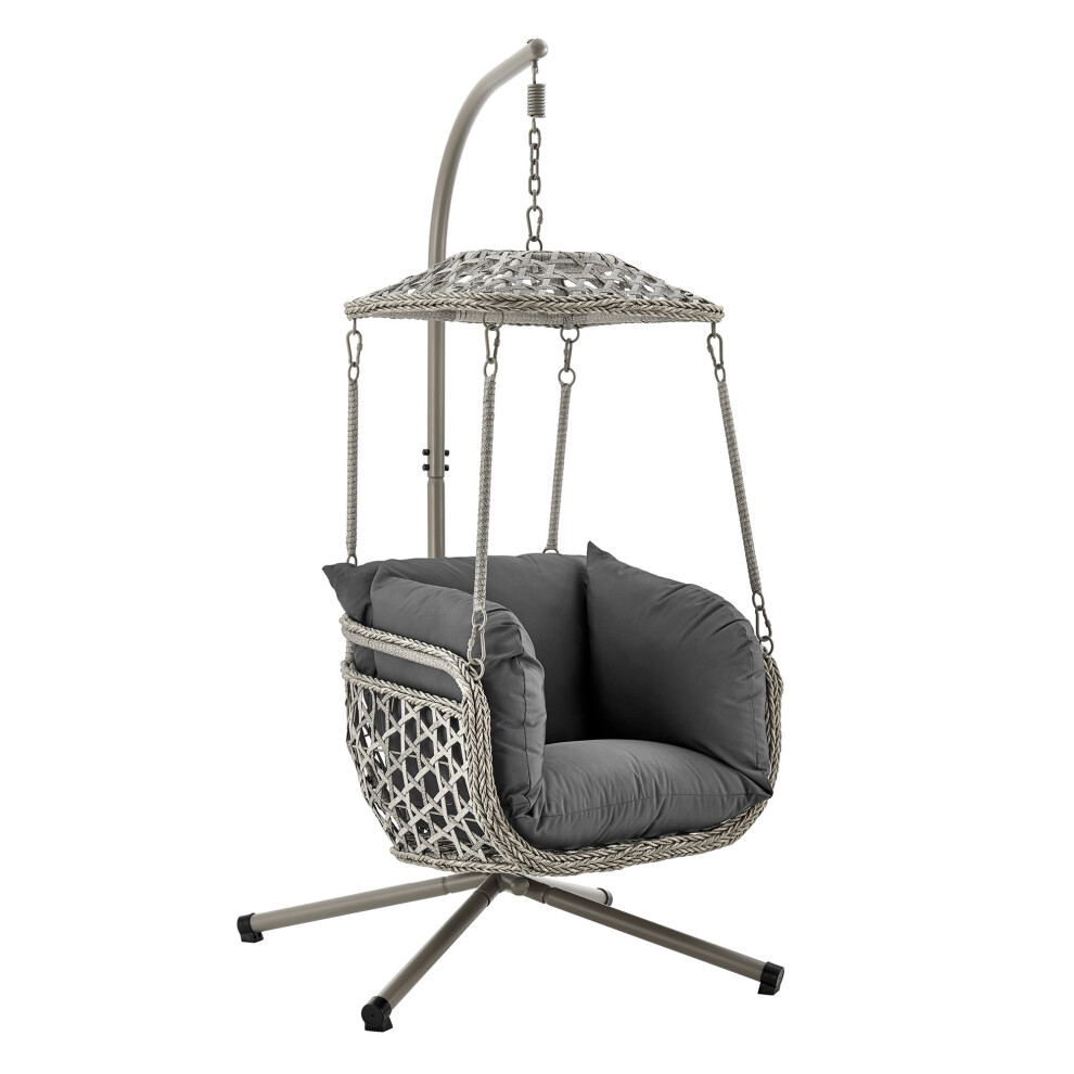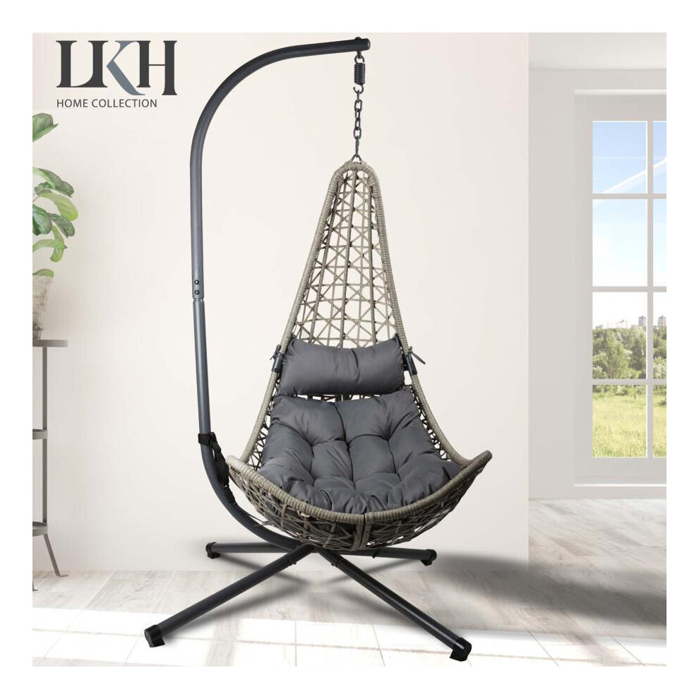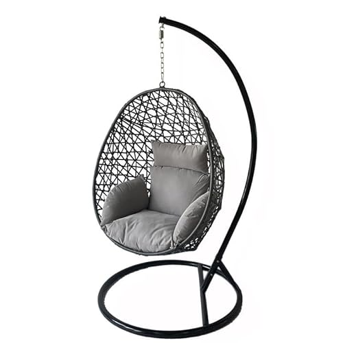 Alivio Rattan Hanging Egg Chair Basket Chair with Cushion, Weather Resistant Free Standing Swing Chair for Indoor, Outdoor, Patio, Garden, Balcony 150kg Capacity (Grey)