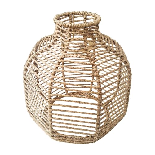 Allayu Woven Lampshade Elegant Home Decor Imitation Rattan Pendant Lamp Shade Handwoven Retro Chandelier Decor Light Cover Ceiling Light Fixture Cover Restaurant Room
