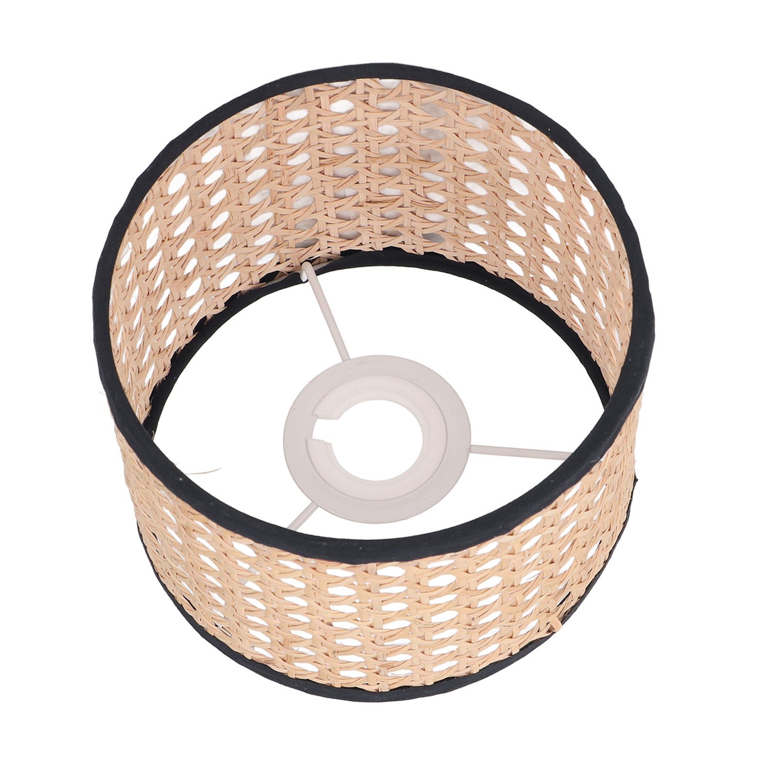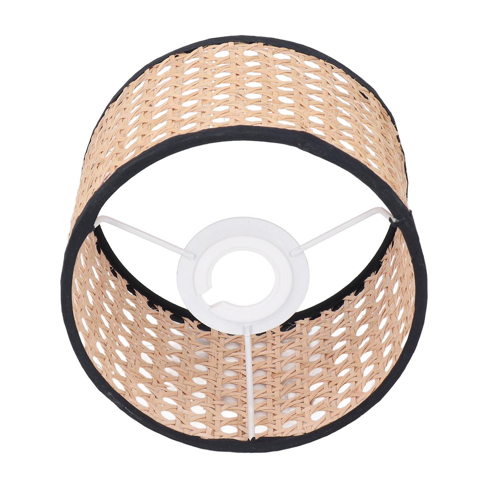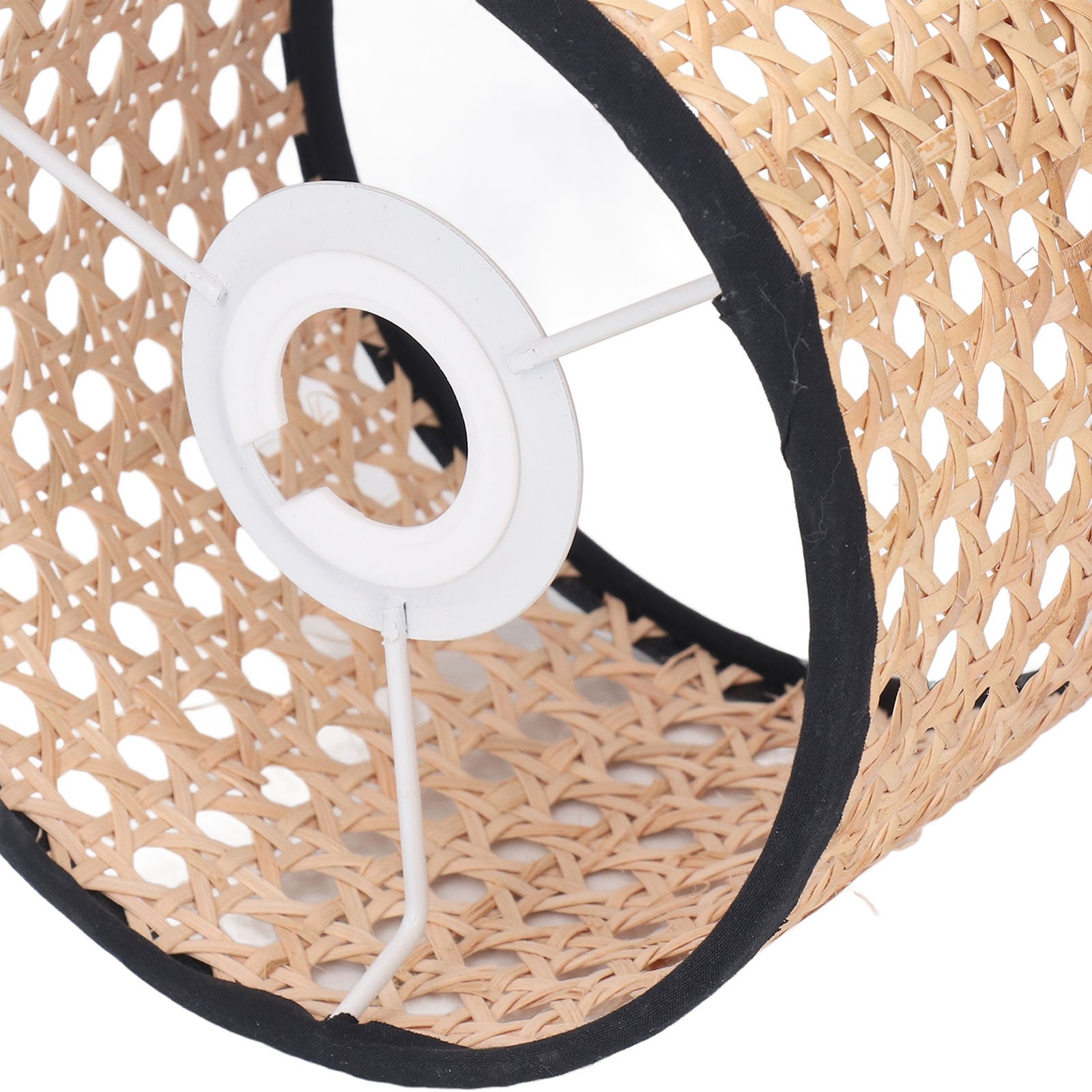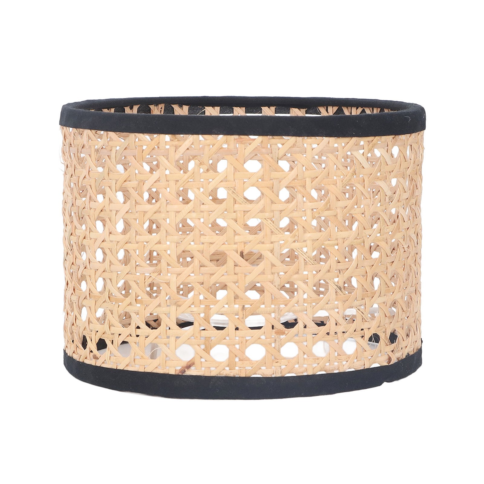 Thin Strapped Rattan Drum Lamp Shade with Black Cotton Fabric Trims by Happy ...