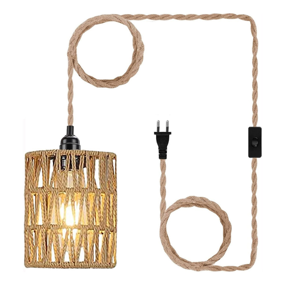 Boho Plug in Pendant Light, Hanging Light with Cord, Ceiling Lamp Rattan Cylinder Shade Switch EU
