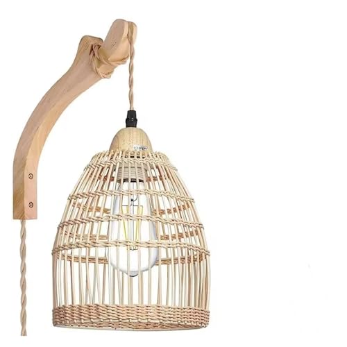 KKXXYQFC Led Rattan Wall Lamp E26 Bedroom Living Room Corridor Wall Light Retro Lamps Decoration Woven Lights Bedside Wall Sconces,