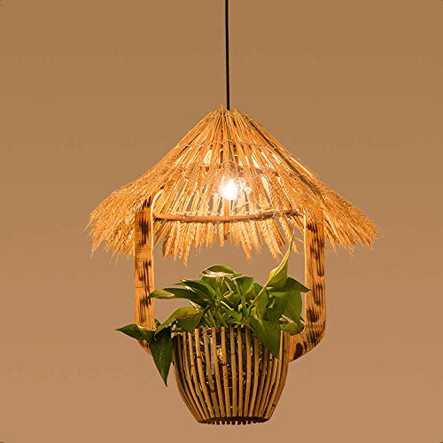 LCHJX Handmade Wicker Rattan Hanging Lamps Vintage Industrial Hanging Light l Tropical Bamboo Ceiling Chandelier Living Room Teahouse Dining Room Pendant Lights Lighting Fixture E27 (5000k 7W)