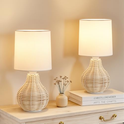 GyroVu Boho Table Lamps Set of 2, Bedside Lamps Farmhouse Table Rattan Small Lamps for Rustic End Home Decoration Bedroom Nightstand Living Room Reading Desk Side Table Lamp(Not Include Bulbs)