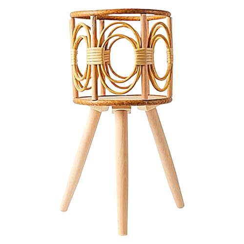 Nudiuhis Hand-Woven Flower Stand Wooden Rattan Floor-Standing Balcony Plant Pot Living Room Green Plant Basket 20CM
