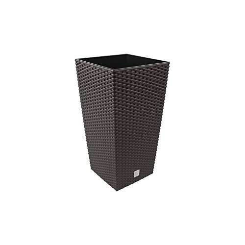 Prosper Plast Plant Pot with Rattan Design in Dark Brown Colour - Suitable for Indoor and Outdoor Use - Square Pot 20 x 20cm with 11.4 Litre Capacity