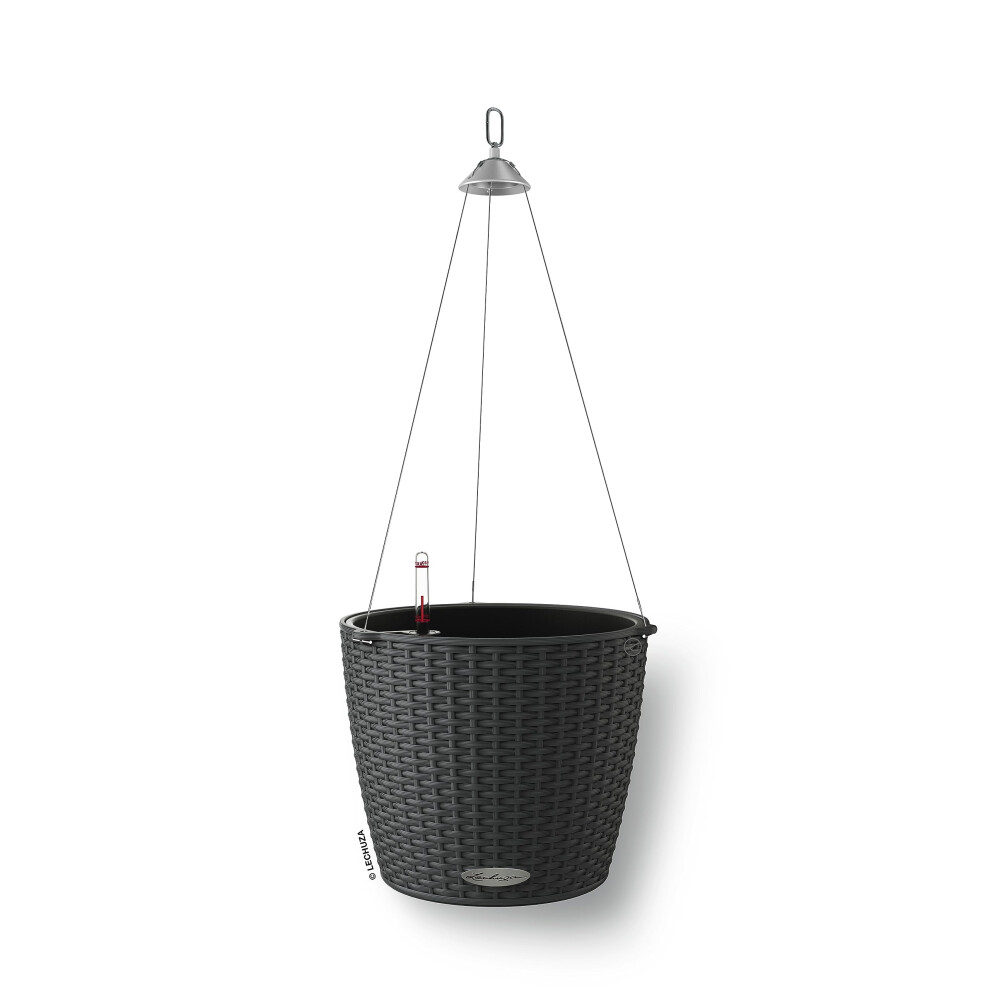 Lechuza Self Watering Hanging Plant Pots NIDO Cottage 28 Rattan Look Plastic Outdoor Indoor Planter with Drainage Hole D27 H23 cm Granite
