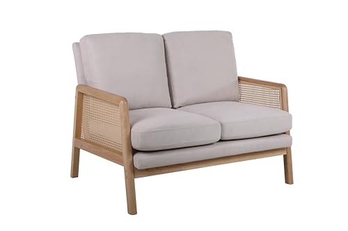 Desser Viola Rattan Conservatory 2 Seater Sofa – Fully Assembled Settee with Biscuit Cushions – Indoor Luxury Real Cane Wicker Light Oak with UK Made Cushions - H107cm x W128cm x D87cm