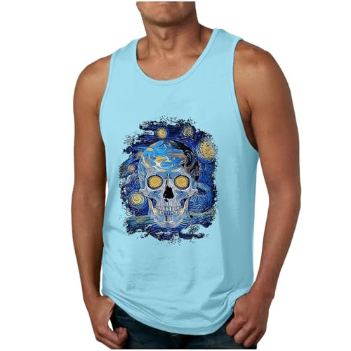 Men's Tank Top, Sports, Gym, Rave Tank Tops, Beach Tank Tops, Graphic Funny Sleeveless Outfits Shirts (Sky Blue, XL)