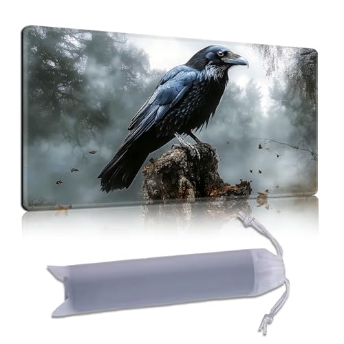 DISUOFEART Playmat for MTG & Magic: The Gathering, 28x16 inch Non-Slip TCG Game Mat for Commander, Black Raven Perched on Mossy Stump Card Game Table Mat