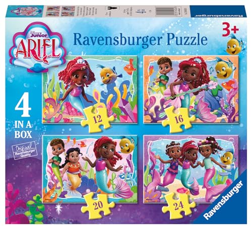 Ravensburger Disney Junior Ariel - The Little Mermaid Toys -4 in a Box Jigsaw Puzzles for Kids Age 3 Years Up - 12, 16, 20, 24 Pieces