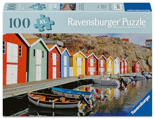 Ravensburger 100 Piece Extra Large Jigsaw Puzzle with Puzzle Board & Poster – Feel Well & Puzzle range, Colourful Houses of Sweden