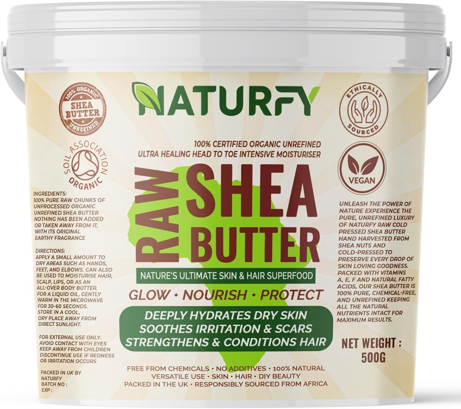 Organic Shea Body Butter Moisturiser, Raw Shea Butter Hand Face Cream for Body