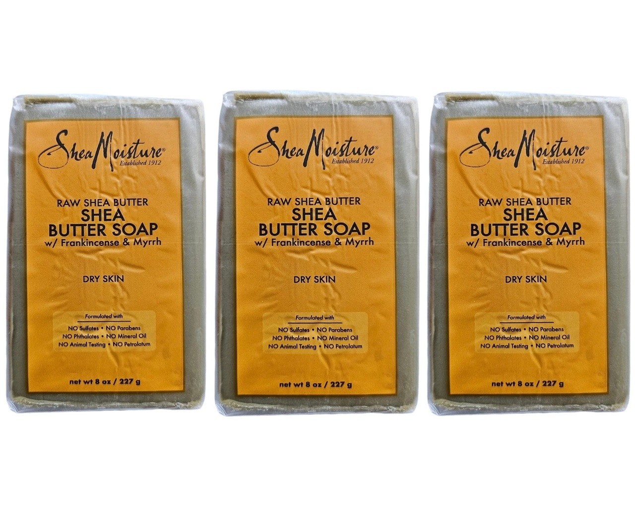 3 X Shea Moisture Raw Shea Butter Soap Woth Frankincense And Myrrh 8oz.