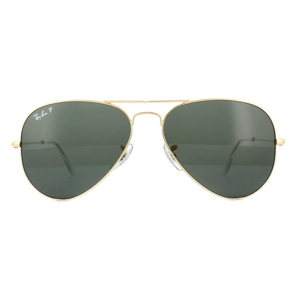 Ray-Ban Unisex Sunglasses Aviator 3025 Gold Green Polarized 001/58 62mm Metal - One Size