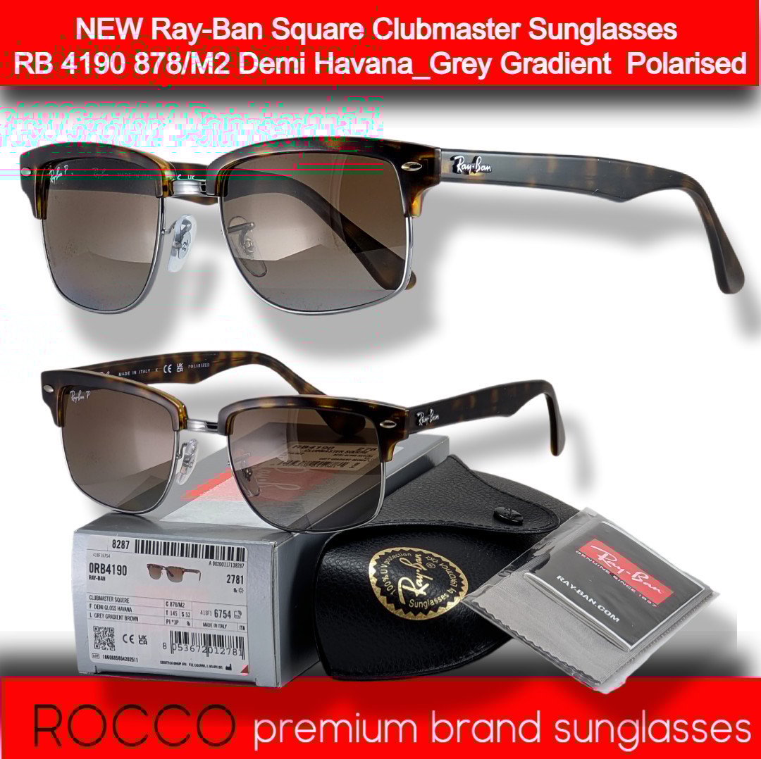 Ray-Ban Square Clubmaster Sunglasses 4190 878/M2 Demi Havana_Grey Grad Polarised