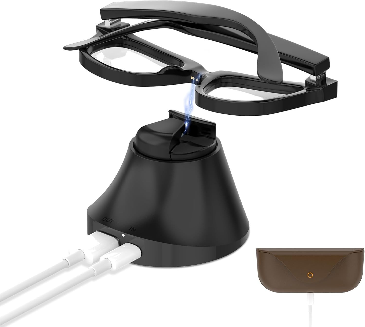 AMVR Magnetic 2-in-1 Charging Dock Compatible with Ray Ban Meta Wayfarer/Skyler/Headliner Smart Glasses Case Accessories, Charger with LED Indicator