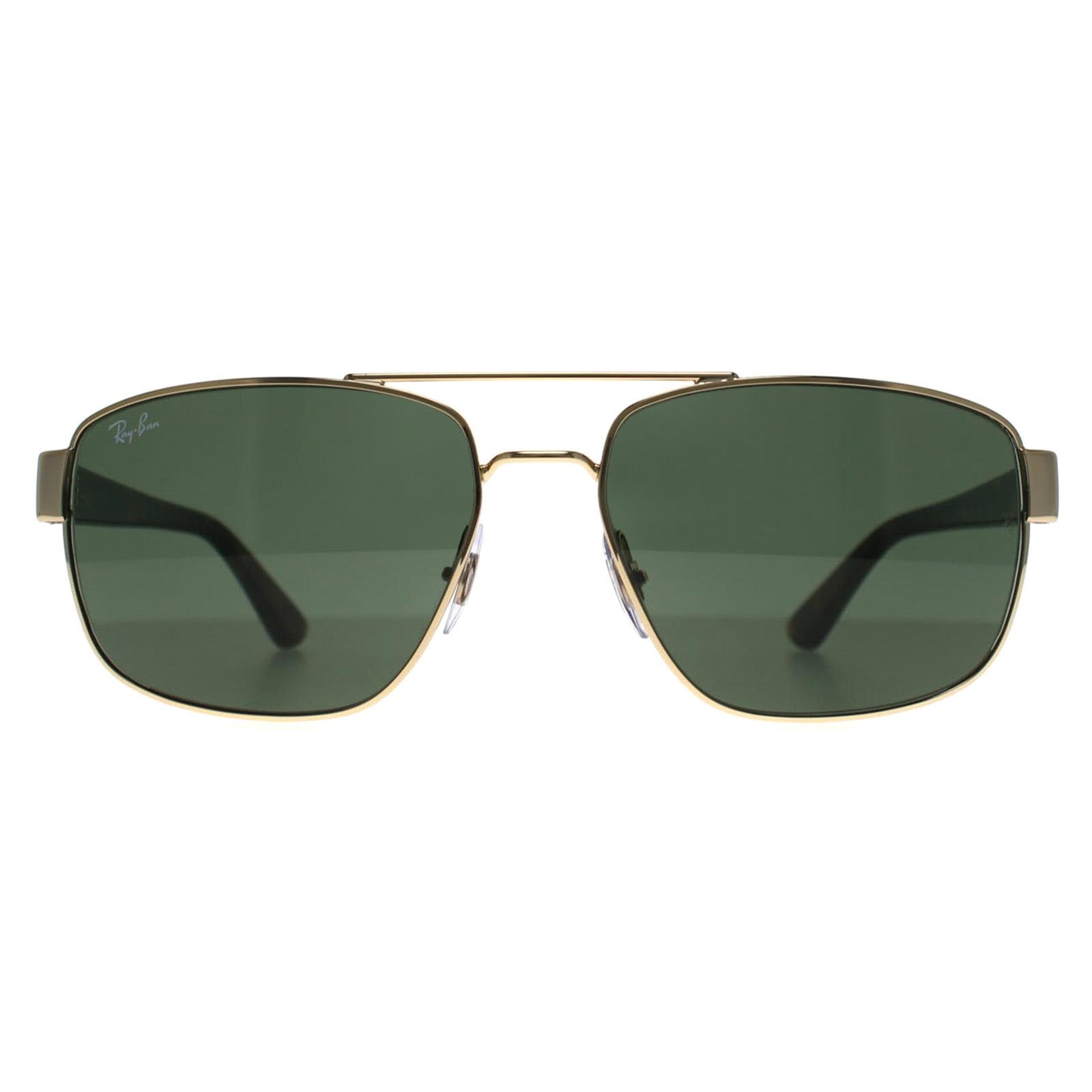 Ray-Ban Rectangle Unisex Polished Arista Gold G-15 Green RB3663 Metal - One Size