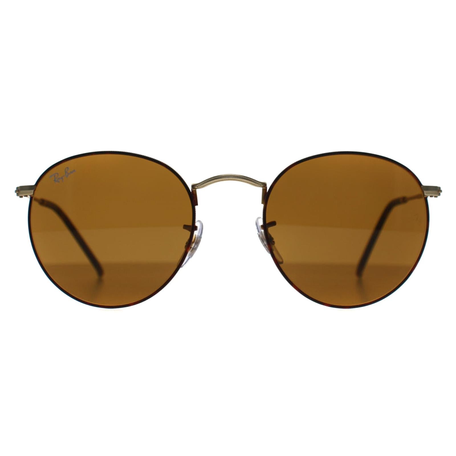 Ray-Ban Round Unisex Matte Havana On Gold Brown Metal 3447 - One Size