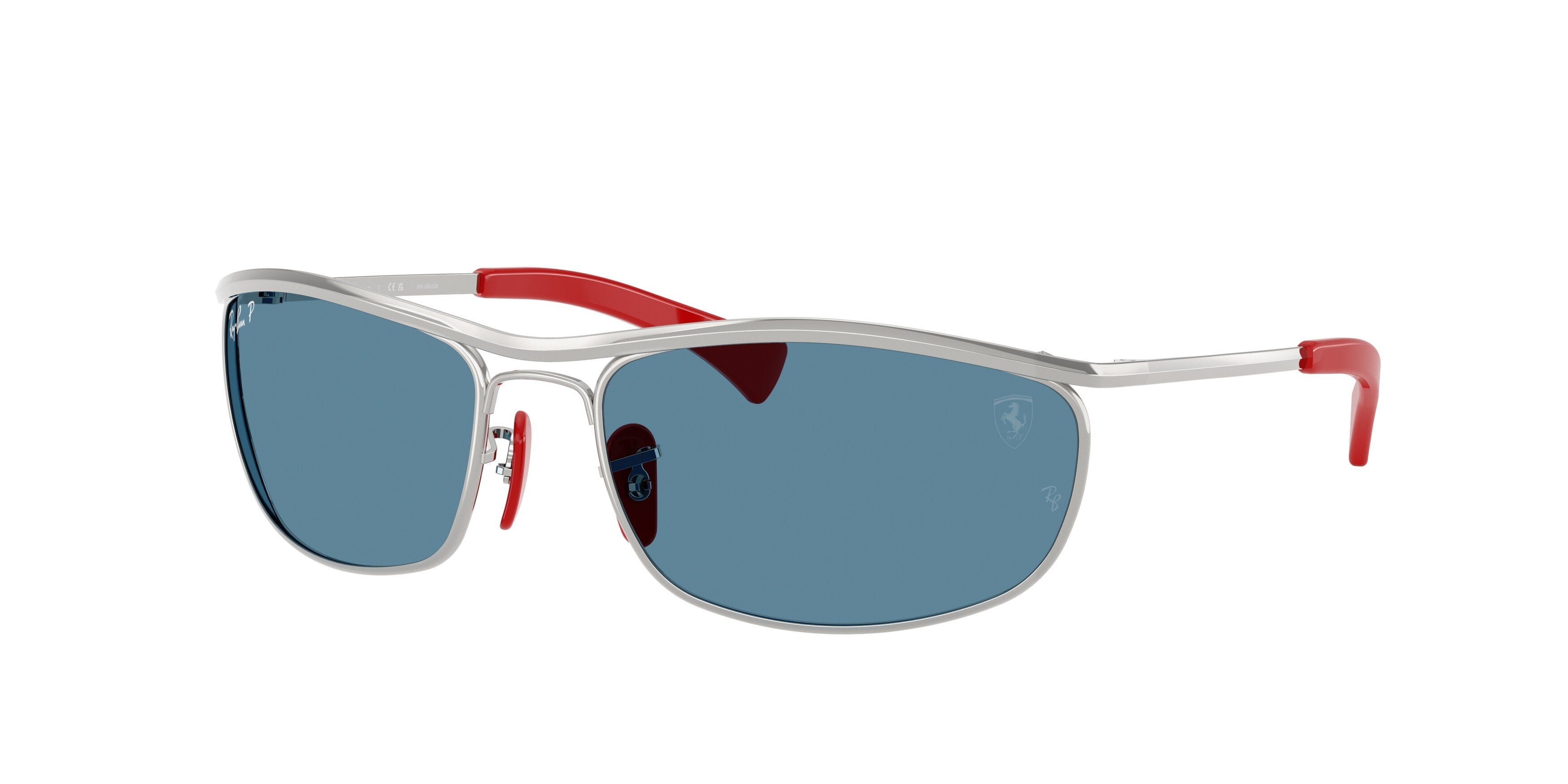 Ray - Ban Unisex Ray - Ban RB3819M F007S2 Sunglasses Metal Silver Blue Round Polarized